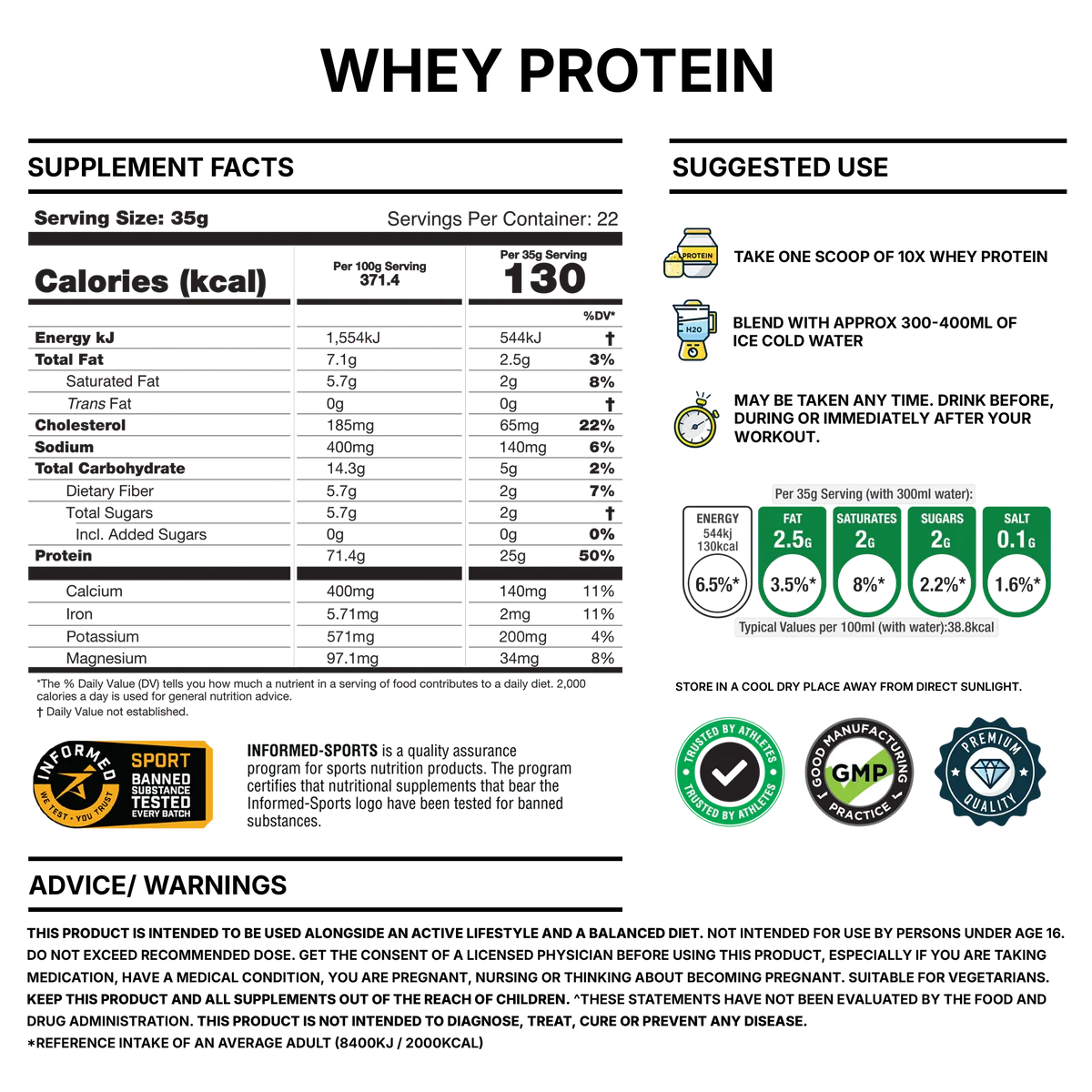 We get asked all the time which is the best protein source for athletes and gymgoers. Our best answer is ‘real food’. The next best source of protein is 10X WHEY! This one’s a real crowd-pleaser, packing 25g of protein per scoop. It’s easy to mix, easy to drink, and tastes delicious.