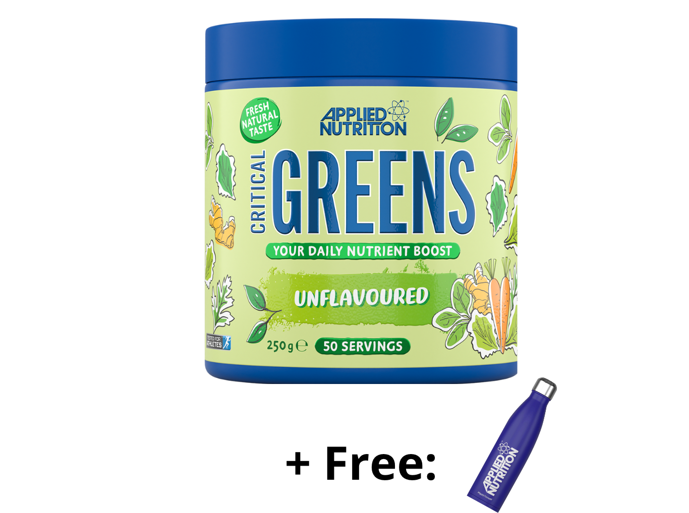 Critical Greens von Applied Nutrition ist eine leistungsstarke Mischung aus 17 verschiedenen Gemüseextrakten, darunter Brokkoli, Sellerie, Spinat, Weizengras und Grünkohlpulver. Dieses Nahrungsergänzungsmittel ist ideal für alle, die ihren täglichen Mikronährstoffbedarf bequem und schmackhaft decken möchten. Mit nur einer Portion pro Critical Greens versorgt Ihren Körper täglich mit einer großen Bandbreite wichtiger Nährstoffe.