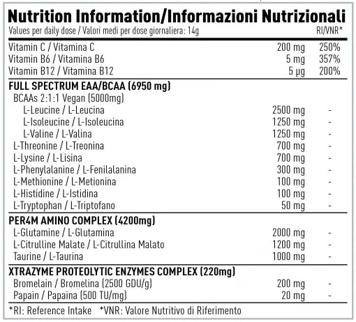 - Gefermentierte BCAAs (5 g): BCAAs sind eine wichtige Rolle bei der Gewichtszunahme und in der Ernährung für intensives Training.