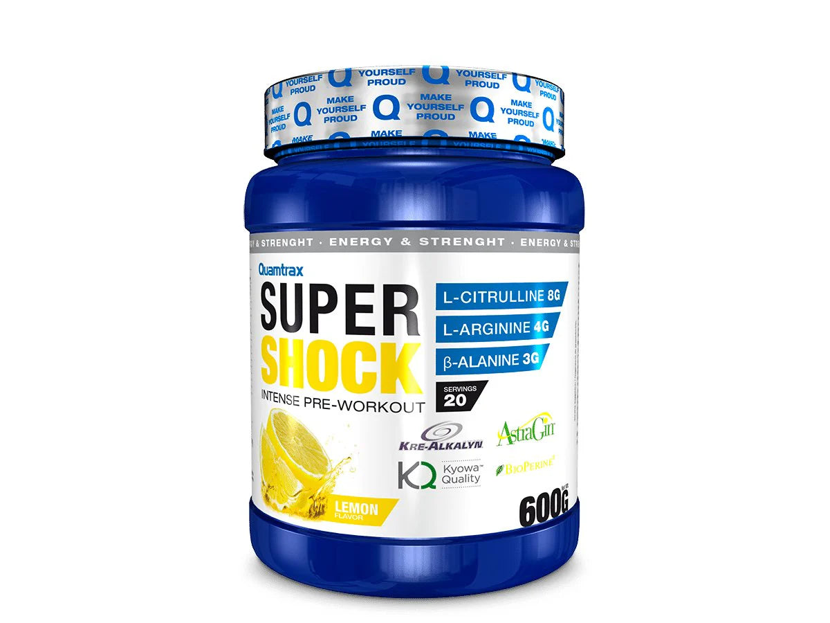 Super Shock ist ein fortschrittliches Pre-Workout-Präparat, das Ihre Leistungsfähigkeit steigern und Ihnen zu intensiveren Trainingseinheiten verhelfen soll. Seine Formel enthält wichtige Inhaltsstoffe wie L-Citrullin und L-Arginin, die den Nährstofftransport verbessern und für stärkere Muskelpumps sorgen. Darüber hinaus reduzieren Kre-Alkalyn®, ein patentiertes Kreatin, zusammen mit D-Asparaginsäure und L-Leucin Muskelschäden und beschleunigen die Regeneration. Die Kombination aus Koffein und L-Taurin sorgt für eine bessere geistige Konzentration, während AstraGin™- und Bioperine®-Extrakte die Nährstoffaufnahme verbessern.