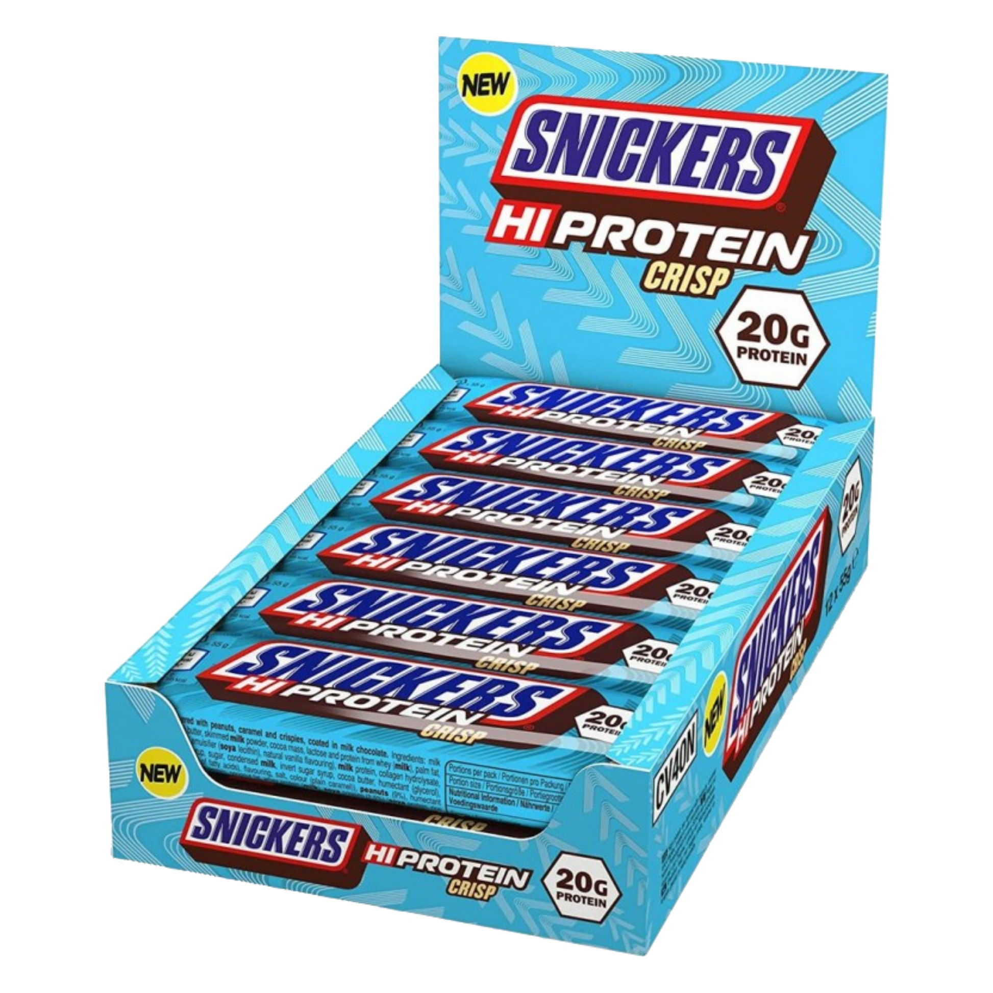 Product description:Are you craving a tasty Snickers chocolate bar, but want something that better suits your active lifestyle? Then discover the Snickers HiProtein Crisp Bar! This high-protein version of the classic Snickers bar offers the same delicious taste, but with added benefits for your fitness goals. With 20 grams of protein per bar to support muscle building, this snack is ideal after your workout. Of course, you can also enjoy it any other time of day as a tasty and nutritious snack.