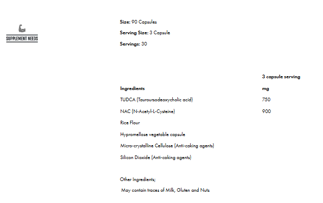 TUDCA + NAC is a fully transparent, non proprietary product at efficacious doses as part of the Supplement Needs Health range.