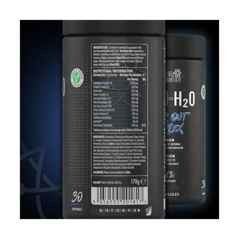 Applied Nutrition Shed-H2O est un outil puissant pour tous ceux qui recherchent un niveau supplémentaire de sécheresse et de définition musculaire avant un événement ou une compétition majeur. Il soutient vos efforts pour éliminer l'excès d'eau de votre corps, vous donnant une apparence plus ferme et plus mince.