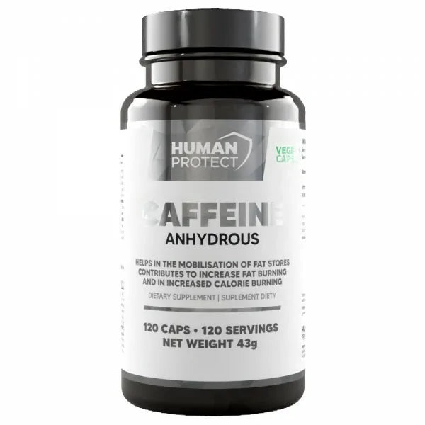 Présentation de Human Protect Caffeine, votre source pratique de suppléments de caféine. Disponible sous forme de capsules, chaque portion contient 200 mg de caféine anhydre, vous procurant le regain d'énergie dont vous avez besoin pour affronter votre journée ou vos séances d'entraînement.
