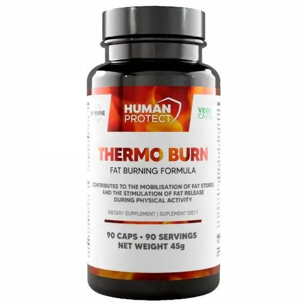 Human Protect Thermo Burn est un complément alimentaire sous forme de gélules destiné à favoriser la perte de poids et la réduction de la graisse. Il est conçu pour favoriser la thermogenèse grâce à des ingrédients tels que l'extrait de thé vert, le guarana et le poivre de Cayenne, qui peuvent augmenter la production de chaleur du corps et conduire à une combustion plus intense des calories. Il augmente également les niveaux d'énergie et sa dépense car la caféine et le guarana ont des effets stimulants, améliorant potentiellement l'activité physique et la combustion des calories. De plus, Thermo Burn aide à supprimer l'appétit grâce à des ingrédients à base d'orange amère qui peuvent réduire la faim et faciliter le maintien d'un déficit calorique, ce qui facilite le respect de votre régime alimentaire. Enfin, il améliore le métabolisme car le chrome aide à réguler la glycémie, contribuant ainsi à une meilleure combustion des graisses et à une meilleure fonction métabolique globale.