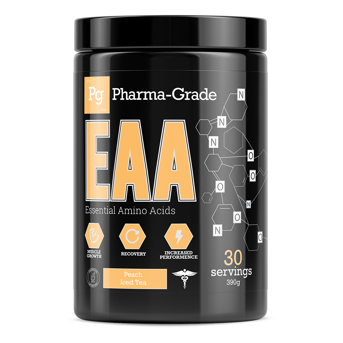 Pharma Grade EAA est le mélange parfait qui fournit 11 g d'acides aminés par portion. Cette formule contient 9 g d'acides aminés essentiels (EAA), dont 6 g d'acides aminés à chaîne ramifiée (BCAA) dans un rapport 2:1:1. De plus, chaque portion comprend 2500 mg de L-Glutamine.